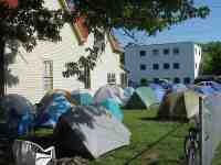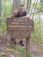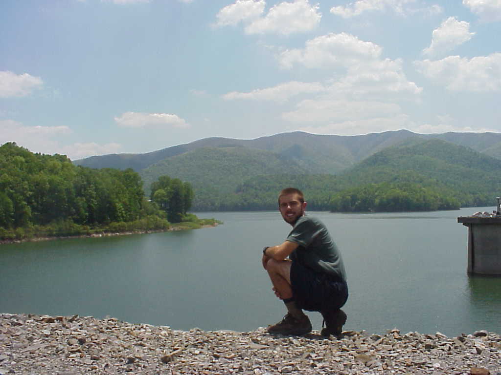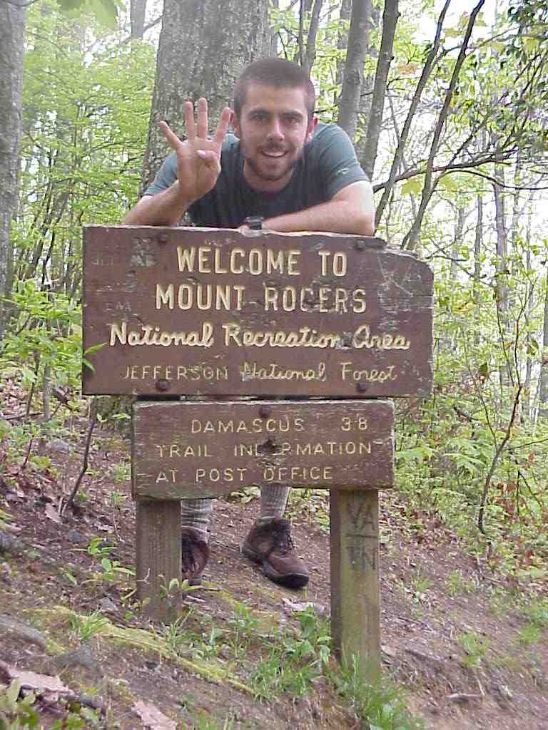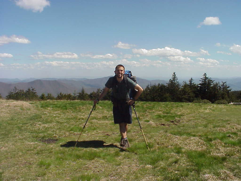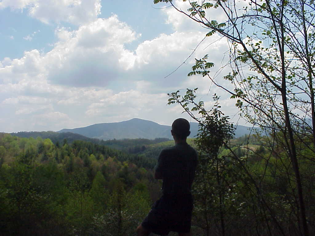 I made an unexpected but highly enjoyable and relaxing stop in Erwin, TN on May 6th. I split a motel room with three guys I met on the night before. here's the motley Crew in front of the deluxe room: John (aka "Medium Rare" which describes the tender condition of his feet), Blake, Ben, and John's pooch, Zoe. This night was the first time since I started the trail that I had a tv to watch. I fell asleep around 1AM to the sweet sounds of ESPN (5/7/99 9:01AM) |