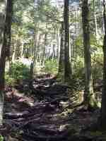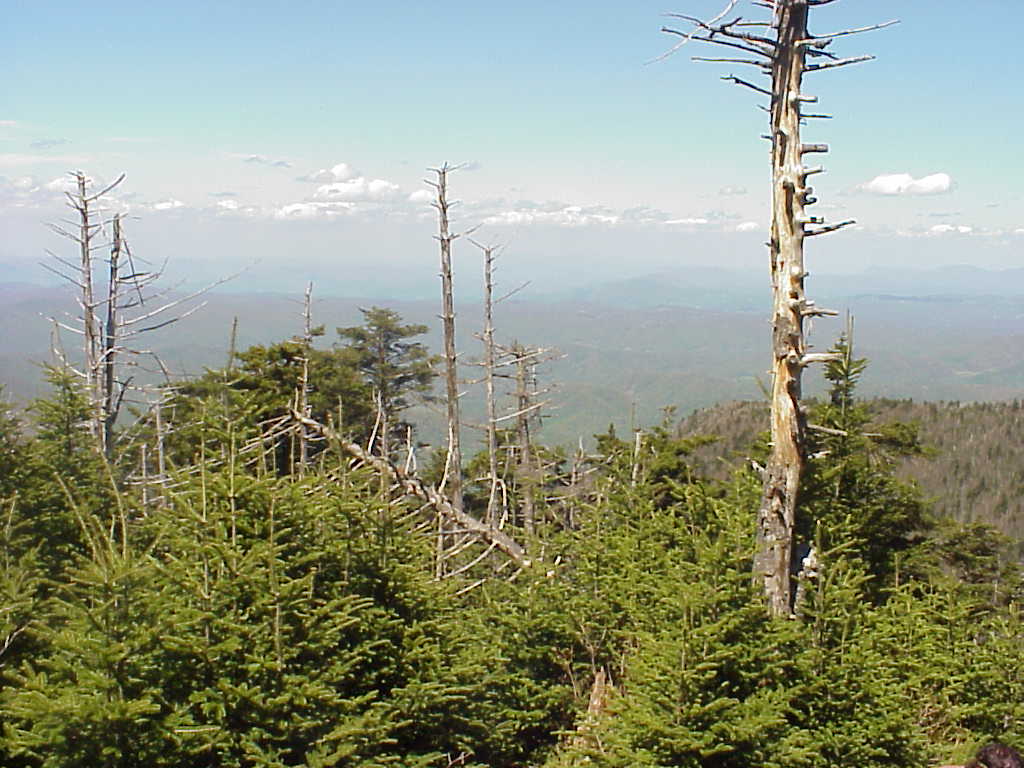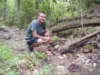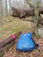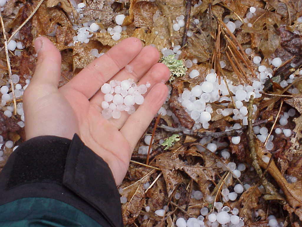 The day I left Erwin started warm and sunny, but in the mid-afternoon a thunderstorm rolled in. Since I quickly got drenched, I elected to continue hiking in my t-shirt rather than donning my jacket. This proved to be a mistake when hail started pelting down. Many of the hail stones were as big as olives and it was coming down extremely hard. The best I could do was dive under the fallen tree and held my bandanna over my head for protection. Fortunately, it only lasted a few minutes. (5/7/99 4:36pm) |